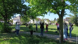 Am Dienstag, den 29. April, startete das Projekt "Bewegte Apotheke" erstmals in Neureut. Bei bestem Wetter machte sich die Gruppe an der Hardt Apotheke in der Franz-Kafka Straße auf den Weg. Gestärkt mit einem Magnesium Drink ging es zum Festplatz am Adolf Ehrmann Bad, weiter bis zum Hermann Meinzer Park und dann zurück zum Startpunkt. Unterwegs fanden aktive Pausen mit Gleichgewichts- und Kräftigungsübungen statt.