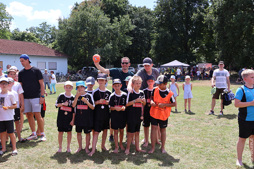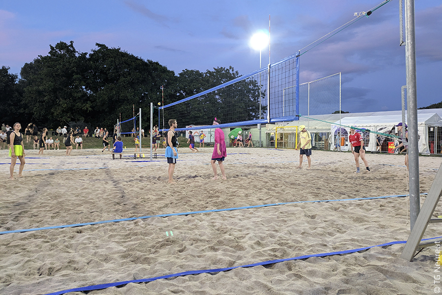 Am Samstagabend wurde das Spielfeld dann zur Bühne für ein weiteres Highlight: Verschiedene Neureuter Vereine aus unterschiedlichen Sparten traten gegeneinander im Beachhandball an und lieferten sich packende Duelle mit viel Einsatz, Humor und Ehrgeiz. Dabei stand neben dem sportlichen Ehrgeiz vor allem der Spaß im Vordergrund – und natürlich der Wunsch, eine gute Platzierung zu erreichen.
