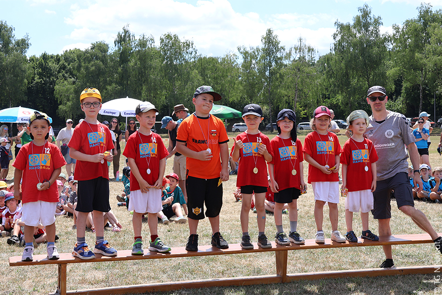 Weiter ging es am Samstag mit dem Mini- und F-Jugend-Handballspielfest, bei dem die jüngsten Sportlerinnen und Sportler voller Begeisterung ihr Können zeigten. Neben spannenden Spielen konnten sich die Kinder an abwechslungsreichen Stationen austoben. Der Spaß am Sport, Teamgeist und die Freude am gemeinsamen Erleben standen dabei im Vordergrund.