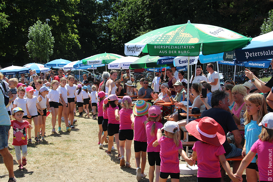 Drei Tage lang stand bei der TG Neureut alles im Zeichen des Sports, der Gemeinschaft und der Freude am Miteinander. Ein Highlight war das stimmungsvolle Beachvolleyballturnier „Sun-Moon-Cup“ am Freitagabend, das erneut mit 20 Mixed-Teams ausgetragen wurde – darunter viele neue Gesichter. In sommerlicher Abendatmosphäre wurde unter Flutlicht bis kurz vor Mitternacht gespielt, gelacht und gefeiert. Die Flexibilität und der Zusammenhalt der Teilnehmenden machten es sogar möglich, zwei ausgefallene Teams kurzfristig zu ersetzen. Am Ende setzte sich das Team „Sandballer“ im spannenden Mitternachtsfinale durch. Besonderen Applaus gab es auch für kreative Teamnamen und originelle Verkleidungen – ein Zeichen für den besonderen Gemeinschaftsgeist dieses Turniers, das aus dem Sportfest nicht mehr wegzudenken ist.