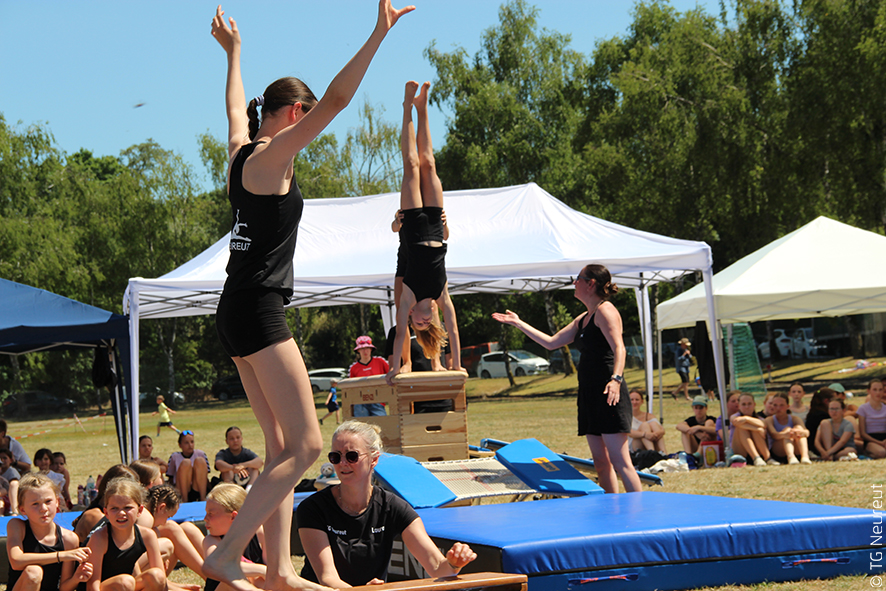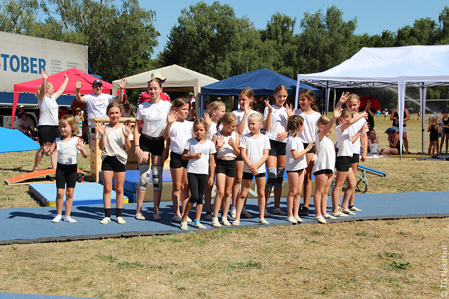 Am Sonntag gehörte die Bühne den Gruppen der Turnabteilung. Am Vormittag konnten die Kinder bei einem abwechslungsreichen Spieleparcours ihr Können zeigen und erhielten für ihren sportlichen Einsatz eine Medaille. Am Mittag begeisterten die verschiedenen Turn- und Tanzgruppen bei der traditionellen Turngala das Publikum mit ihren Auftritten – trotz der sommerlichen Temperaturen. Als kleine Belohnung gab es für alle Teilnehmenden im Anschluss ein Eis. Ein gelungener Abschluss für ein tolles Sportfestwochenende!