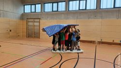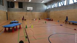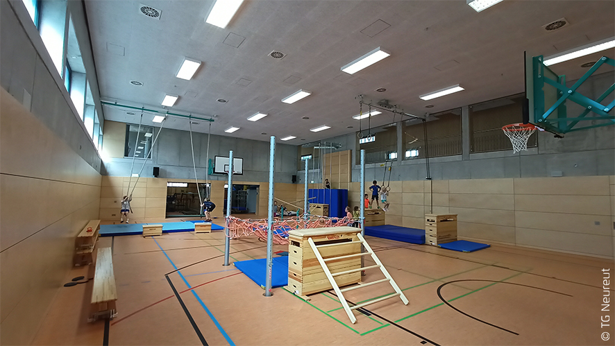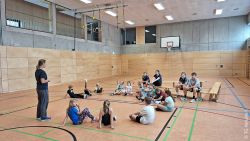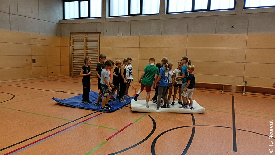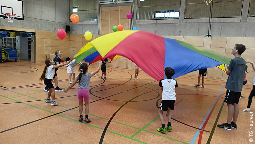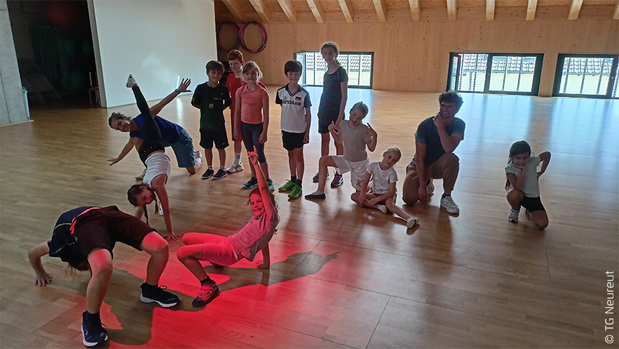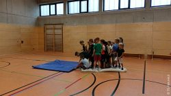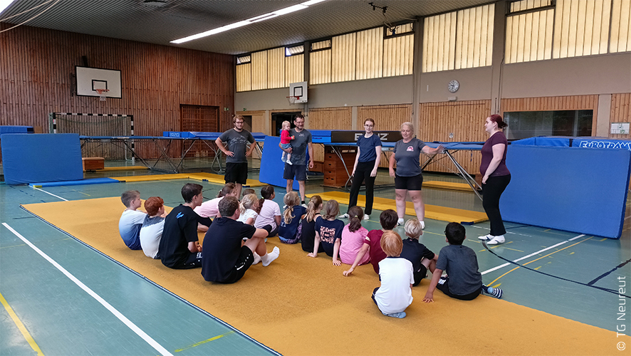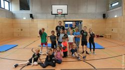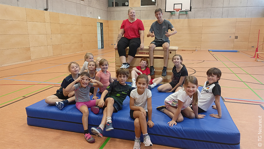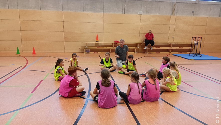 In der ersten und der letzten Sommerferienwoche veranstaltete die TG von Montag bis Freitag erstmals die „Sportwoche“ für Grundschüler*innen. Von 8.30 bis 15 Uhr wurden die Kinder vor Ort betreut. Wobei von 8.30 bis 9 Uhr jedes Kind flexibel in der Turnhalle ankommen durfte. Um 9 Uhr begann dann das eigentliche Programm. Und da ging es abwechslungsreich und vor allem sportlich zu: kleine und große Spiele, Exit Turnhallen Game, Basteln, Bewegungsparcours, Volleyball, Handball, Fußball sowie Selbstverteidigung und -behauptung. An Bewegung mangelte es definitiv nicht.