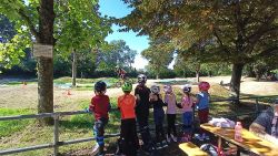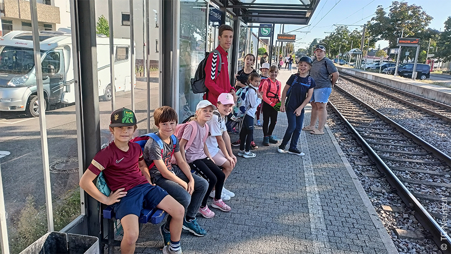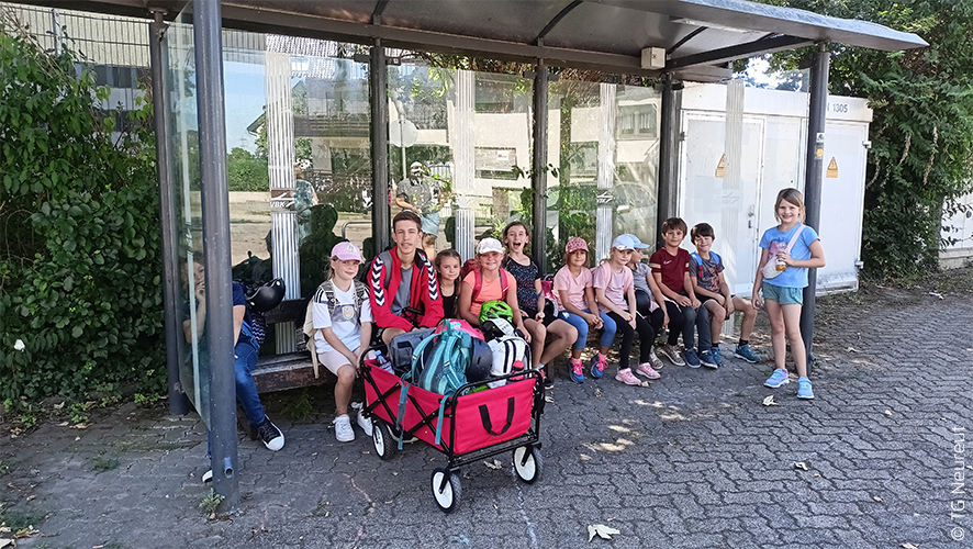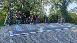 In der zweiten Sportwoche (4. bis 8.9) spielte das Wetter zum Glück mit. Mit S-Bahn, Bus und Bollerwagen machte sich die Gruppe auf den Weg nach Grötzingen. Dort warteten schon viele fleißige Helfer*innen der BMX Abteilung.