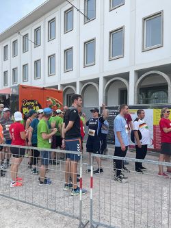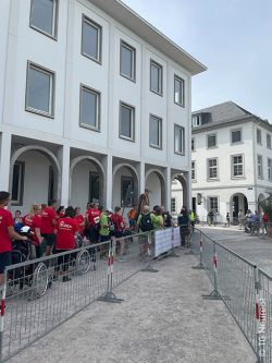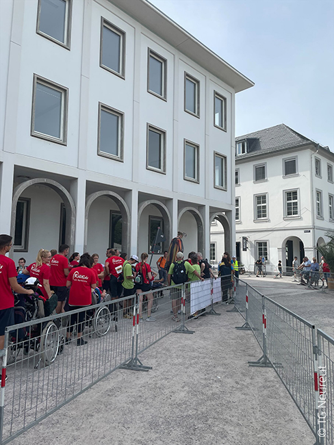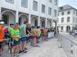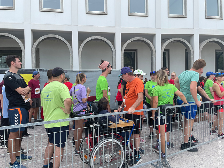 Bereits morgens um 11.30 Uhr sind schon die ersten Teilnehmenden am Schlossplatz eingetroffen, da einige wieder zusätzlich zum Inklusions-Lauf, bei dem Marathon-begleitenden Tanz auf die Bühne vor Ort gingen und dort ihren mit großem Applaus begleiteten Auftritt hatten. Viele hatten die Tage zuvor schon ein sportliches Programm u.a. mit Basketball absolviert, ließen sich dadurch aber in Ihrer Begeisterung für den anstehenden, gemeinsamen Lauf nicht bremsen.