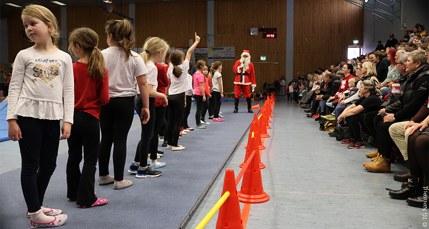 Der Nikolaus kündigte tanzende Sterne, hüpfende Elfen, wuselnde Wichtel, glitzernde Turnerinnen und viele weitere faszinierende Programmpunkte an, die das Publikum begeisterten. Besonders hervorgehoben wurden auch die Kinder, die an Wettkämpfen teilgenommen haben, um für ihre hervorragenden Leistungen geehrt zu werden.