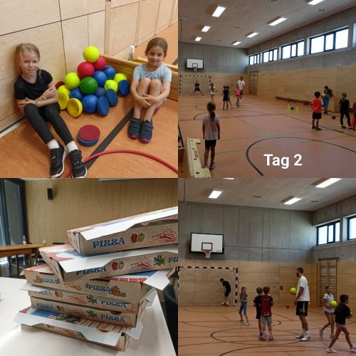 Am Mittwochvormittag war das große Thema der Ball. Aufgebaut waren zahlreiche Stationen, bei denen die Kinder ihr Geschick mit dem Ball beweisen konnten. Eine Runde Völkerball durfte auch nicht fehlen. Vor dem Pizzaessen galt es schließlich noch: Alle gegen Julius. Wer trifft gegen den Handballtorwart ins Tor?