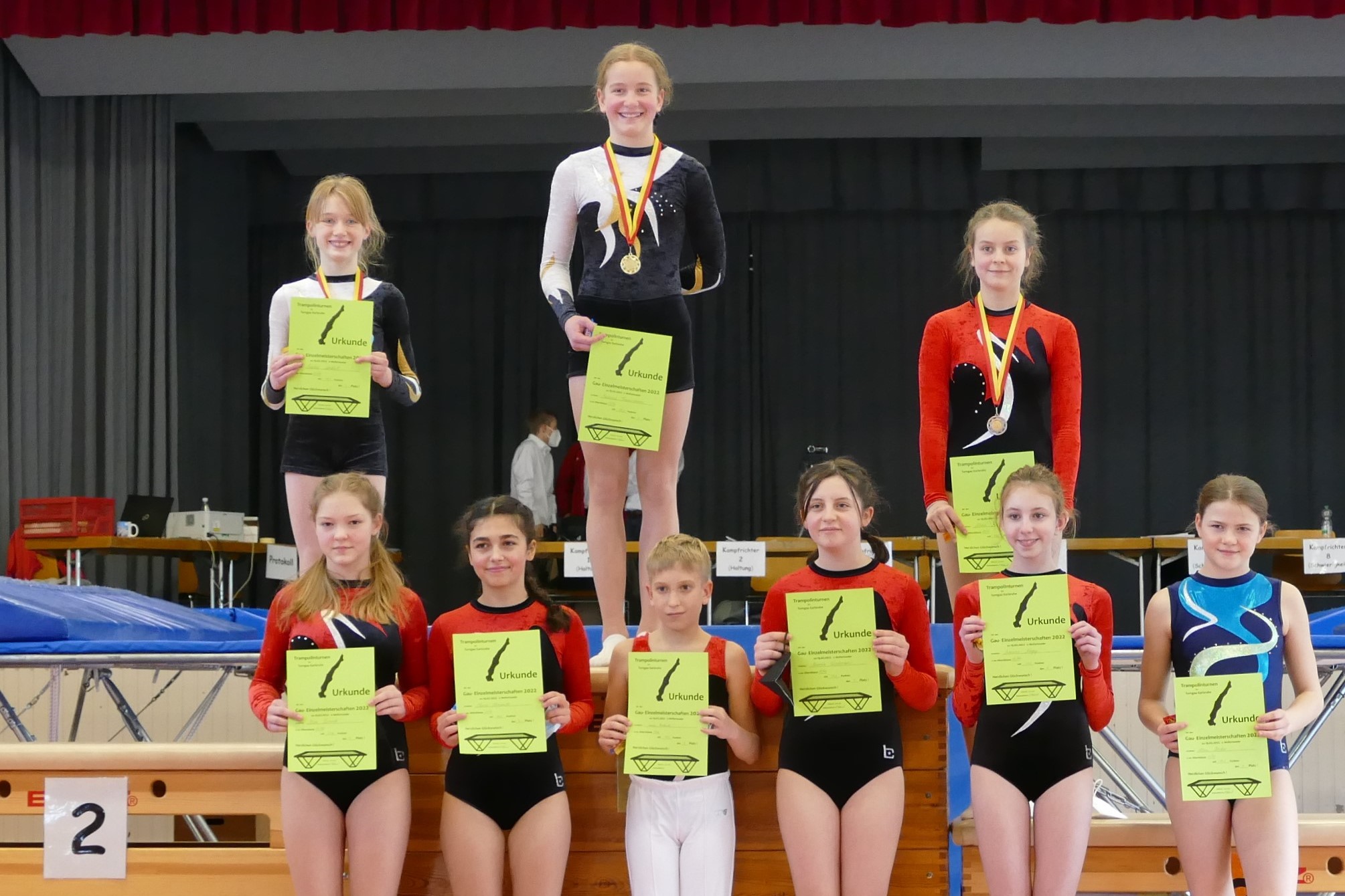 Altersklasse 11/12 Jahre: Viktoria (Gold), Leah (Silber), Tamina (Bronze), Finja (5.), Ines (6.), Mia (8.) und Lisa (9.)