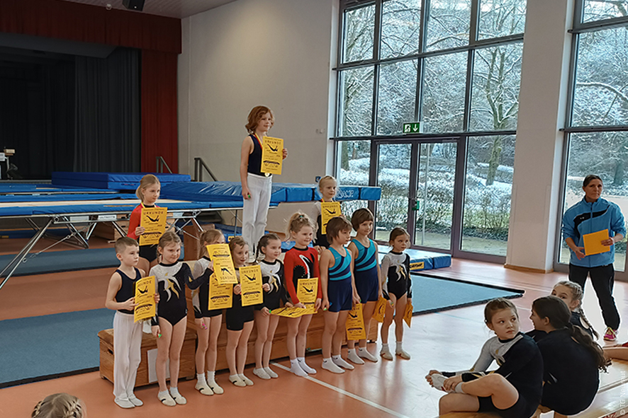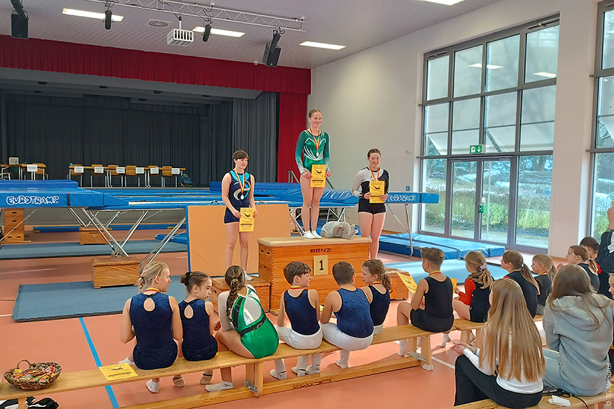In der Altersklasse 11/12 konnten unsere beiden Aktiven ihre Übungen erfolgreich durchturnen. Die Konkurrenz war jedoch insbesondere bei den Haltungswerten etwas stärker, sodass Isabella den 5. Platz und Hanna den 6. Platz belegten.