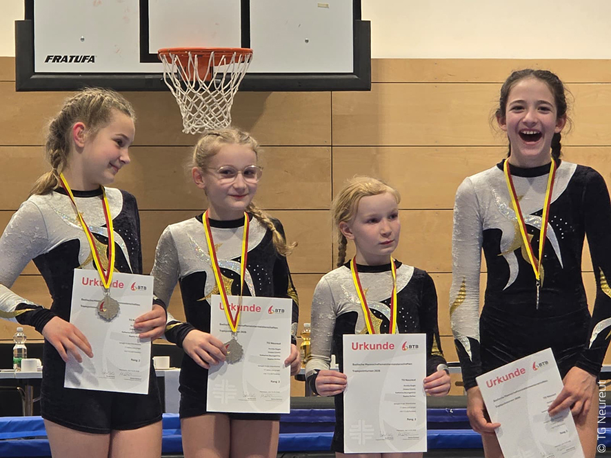 In der Altersklasse „11 Jahre und jünger“ erturnten sich Aurelia, Jovana, Sophia und Katharina mit einer guten Vorstellung die Silbermedaille – nur knapp hinter Mannheim. In der Altersklasse 12-14 Jahre gingen Hanna und Isabella gemeinsam mit Lotte und Mila R. an den Start, die als jüngere Jahrgänge die Mannschaft ergänzten. Sie erreichten dennoch einen ordentlichen 6. Platz.