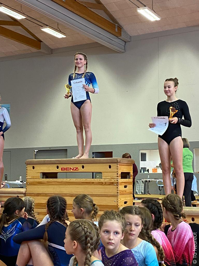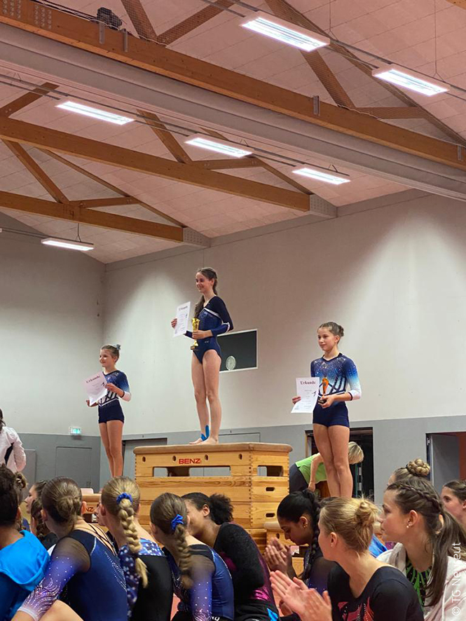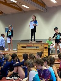 Am Vormittag starteten wir in der Leistungsklasse LK4. Unsere jüngsten Turnerinnen konnten tolle Erfolge erzielen; jeweils in ihren Altersklassen erlangten Clara und Nike den 1. Platz und Johanna erreichte eine 3. Platzierung.
