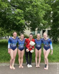 Auch für das zweite Team mit Marlena, Leah, Lusia und Mari gab es eine Herausforderung, da sie aufgrund eines gesundheitsbedingten Ausfalls lediglich mit vier Turnerinnen an den Start gehen konnten. Nichtsdestotrotz konnte das Team vollständig überzeugen und erreichte bei diesem Vorkampf den ersten Platz. Eine sehr gute Ausgangslage für den Rückkampf, der am 23. Juni, im Otto-Hahn-Gymnasium stattfinden wird. Herauszuheben ist hier Leah, die mit 47,05 Punkten, die tagesbeste Turnerin ihres Jahrgangs wurde. Auch Mari zeigte die tagesbeste Übung am Boden.